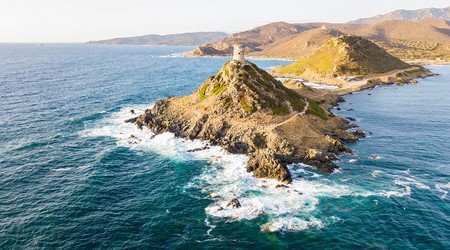 la isla. La torre se encuentra a una altura de 32 metros en la Punta di Fautea.