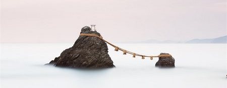 Meoto Iwa, las rocas sagradas de Japón: Meoto Iwa, «rocas casadas». Amarrados por gruesas cuerdas de paja