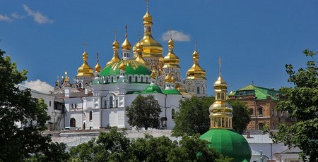 al río Dniéper, consta de múltiples iglesias y dependencias subterráneas construídas dentro de unas